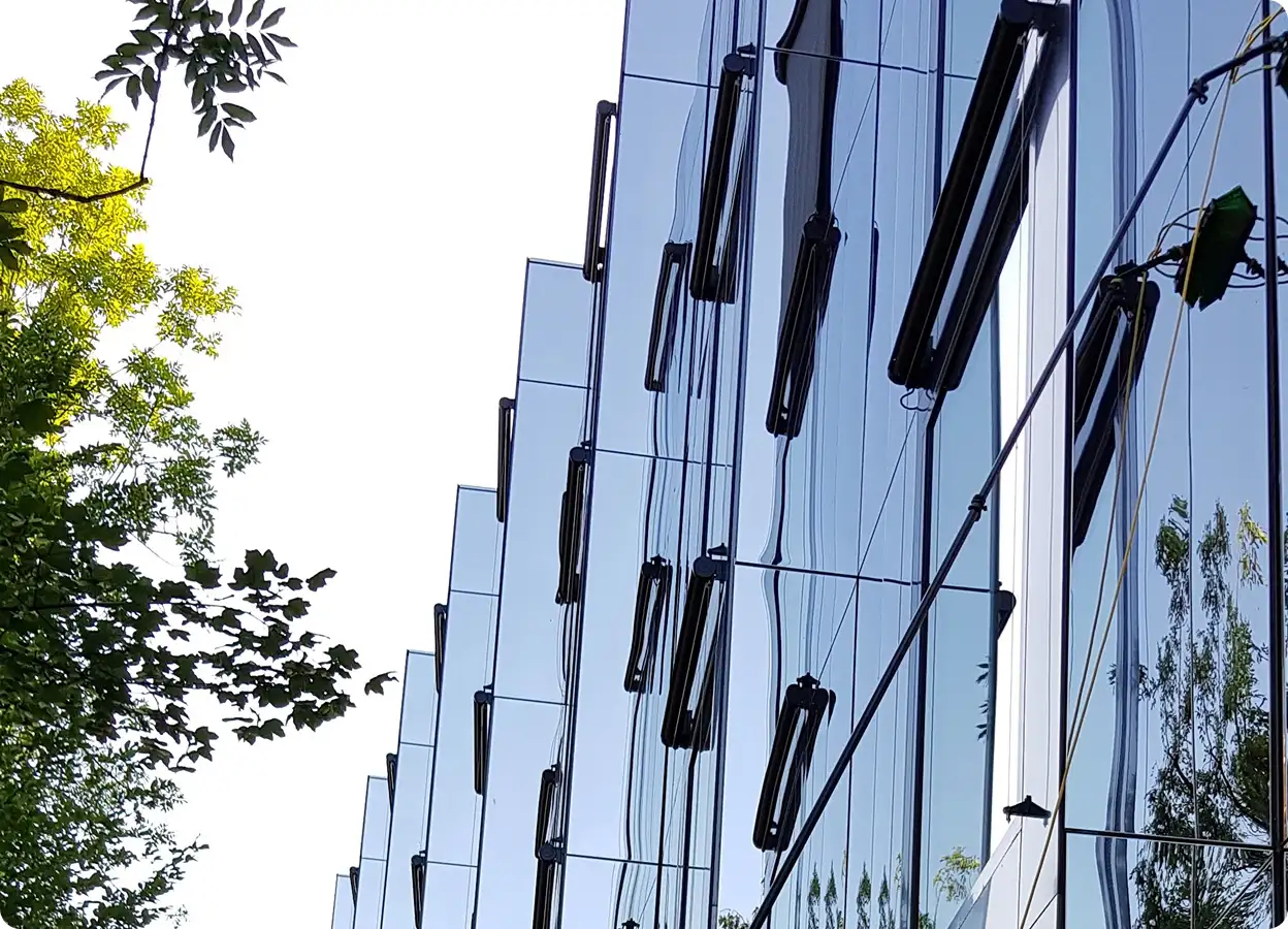 Die Verglasung deines Gebäudes ist das Gesicht deines Unternehmens nach aussen. Mit unserem Umkehrosmose-System garantieren wir eine makellose, nachhaltige Reinigung, ohne Einsatz von chemischen Reinigungsmitteln.